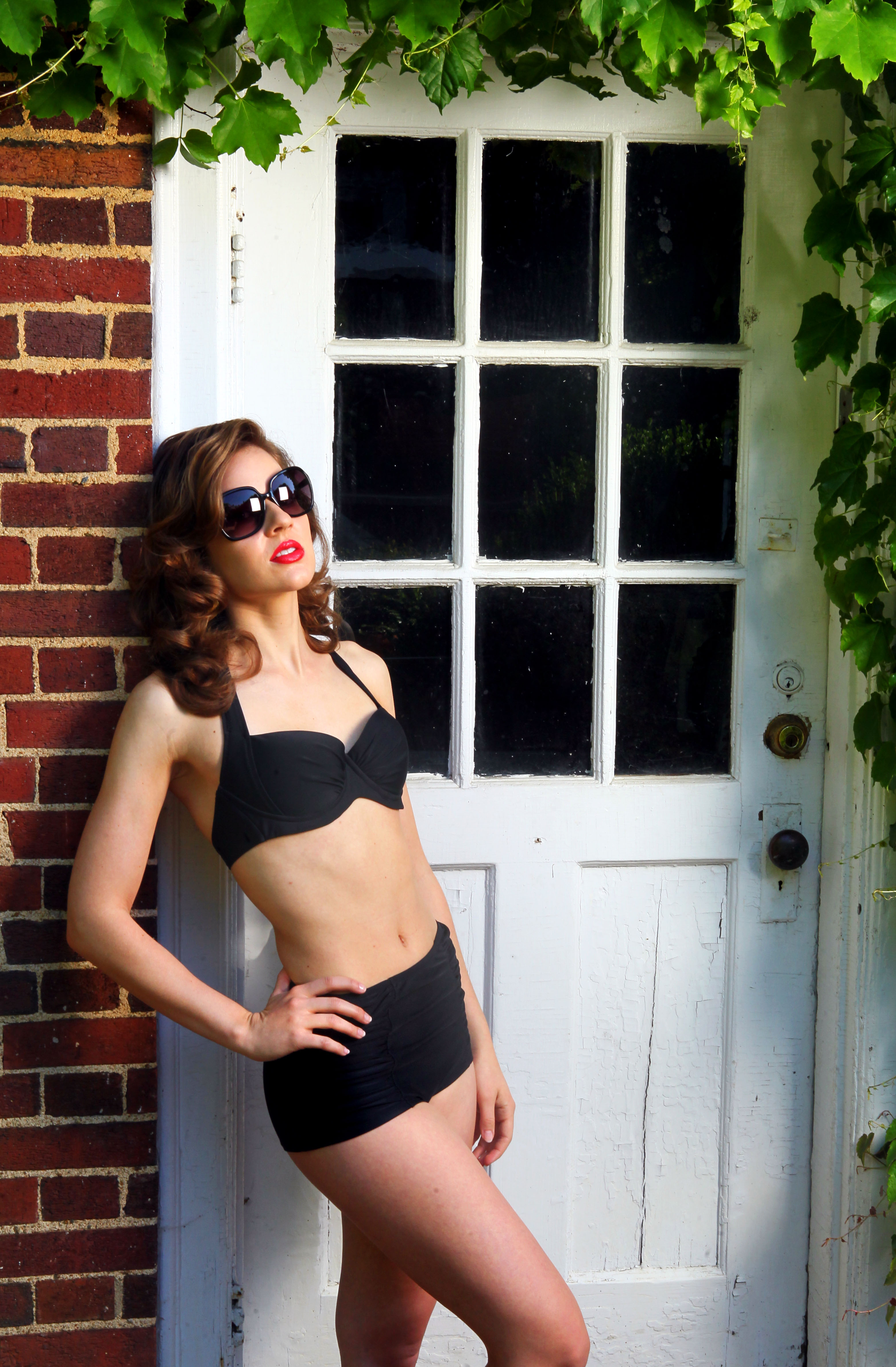 The shoot was all about the revival of swimwear that’s not the barely there variety. The retro influence in suits is a good thing. We don’t all look our best in next to nothing. A few extra inches can work wonders. And retro doesn’t mean everyone’s fully covered. We shot this at a friend’s home. The couple’s black bottom pool spoke volumes about causal old Hollywood luxe.
