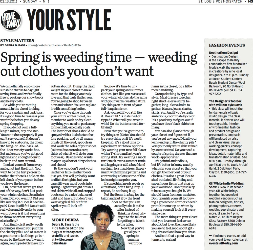 So while you’re rooting around in the closet looking for your sandals and tank tops, it’s a good time to reassess your wardrobe before you do any spring shopping.