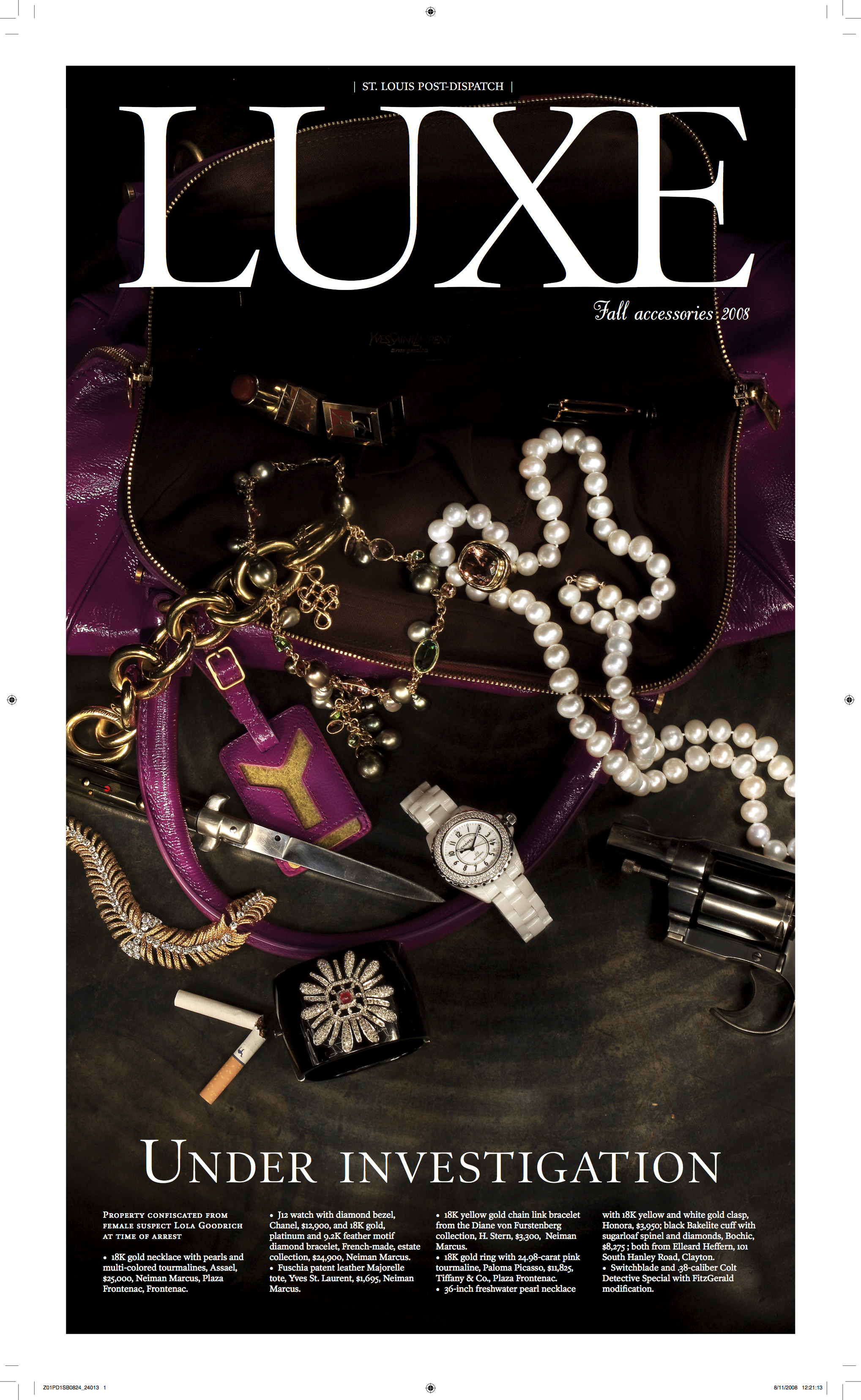 “Luxe” was our high-end glossy magazine-style fashion publication for a while. It was a treat to work in full color on great paper, but geez Louise was it a pain in the butt to do without a fashion assistant.