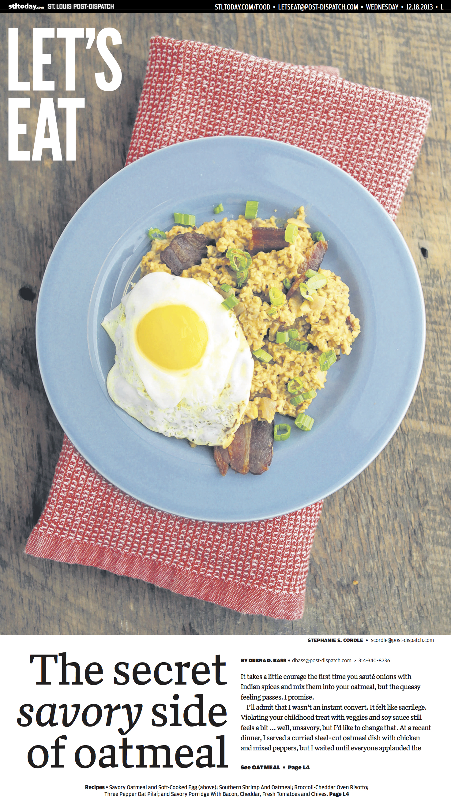 In my first-ever food cover, “The Secret Savory Side of Oatmeal” (it’s really rare, but I came up with the headline before I started the story), I began with this confession: