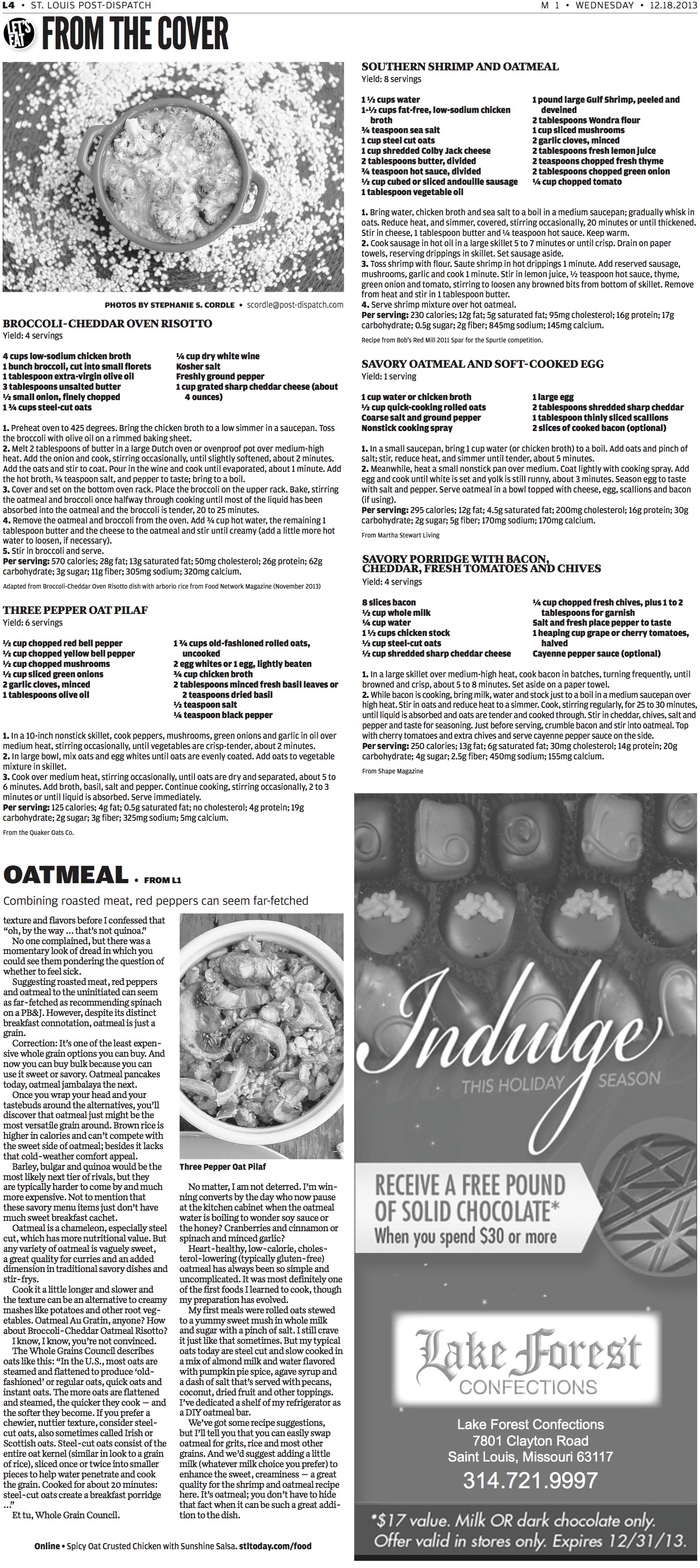 The reaction to the story was shock and awe. My favorite comment came from one of our sports editors with a manly man palate who said, “That’s the first time I’ve ever eaten oatmeal with a fork. It was really good. Who knew?”