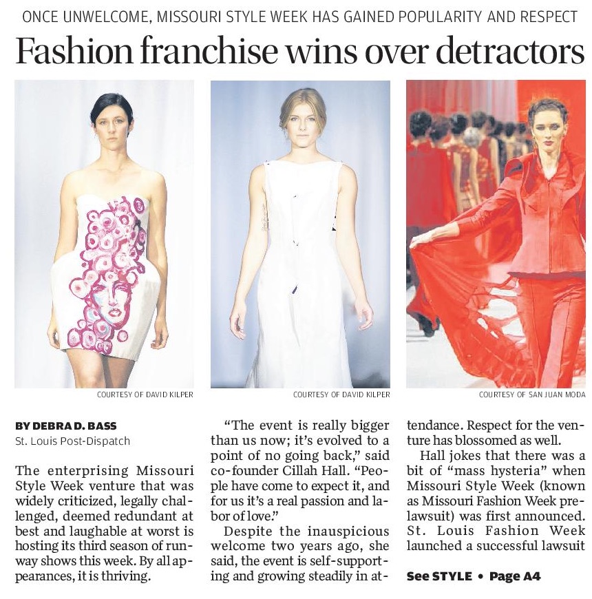 I’m admit, the lede (opening paragraph) was written to catch reader’s attention and explain that fashion isn’t just fun and game, it’s serious business: “The enterprising Missouri Style Week venture that was widely criticized, legally challenged, deemed redundant at best and laughable at worst is hosting its third season of runway shows this week. By all appearances, it is thriving.”