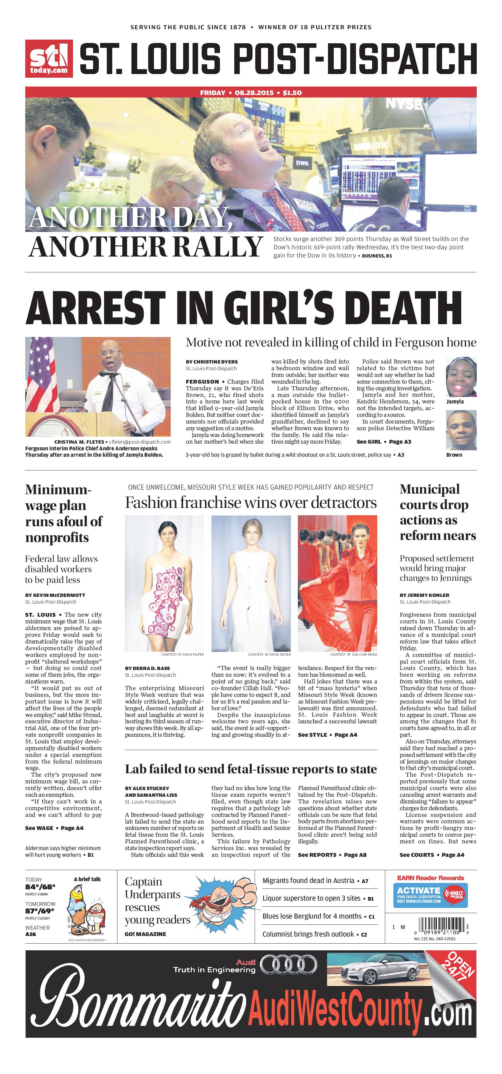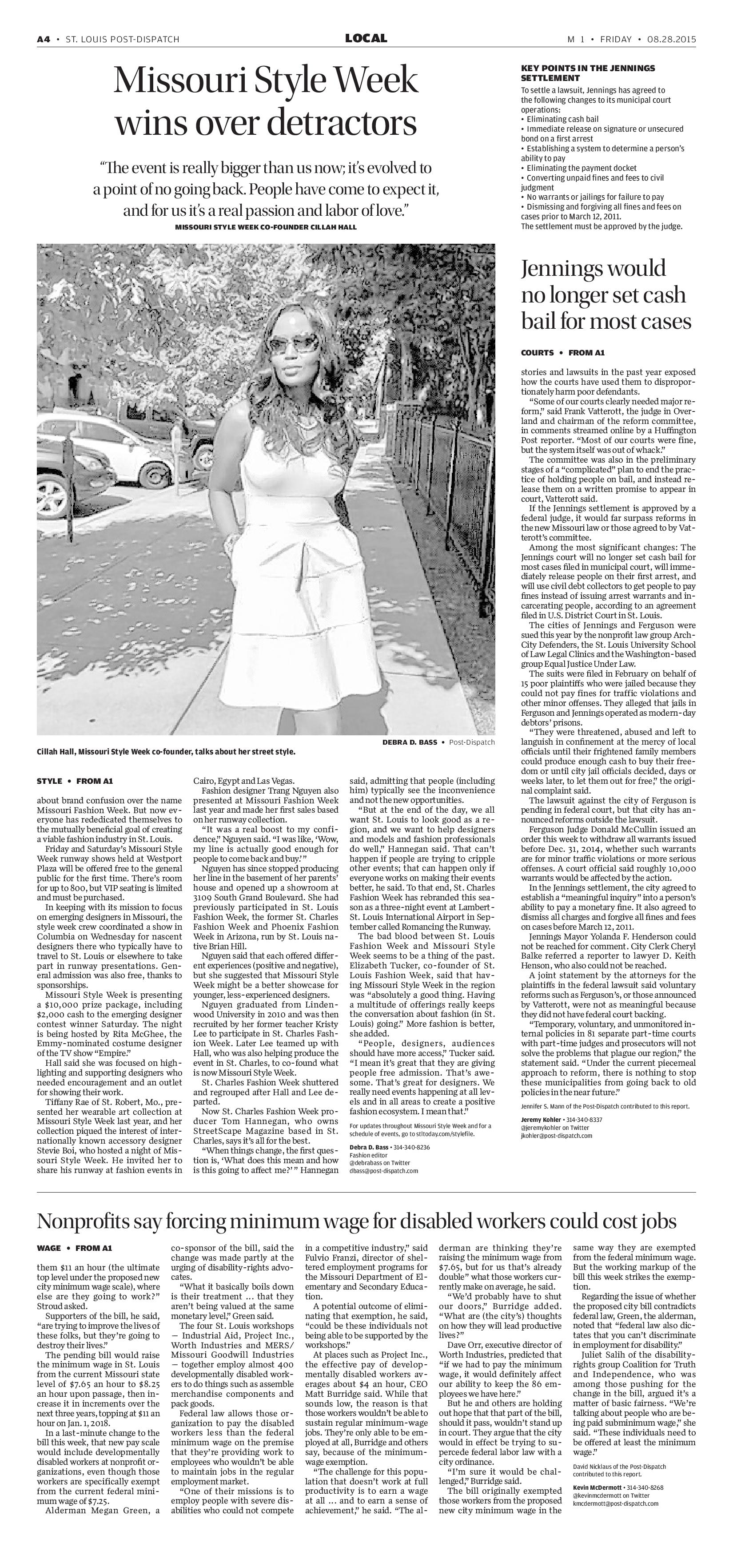 I’m admit, the lede (opening paragraph) was written to catch reader’s attention and explain that fashion isn’t just fun and game, it’s serious business: “The enterprising Missouri Style Week venture that was widely criticized, legally challenged, deemed redundant at best and laughable at worst is hosting its third season of runway shows this week. By all appearances, it is thriving.”